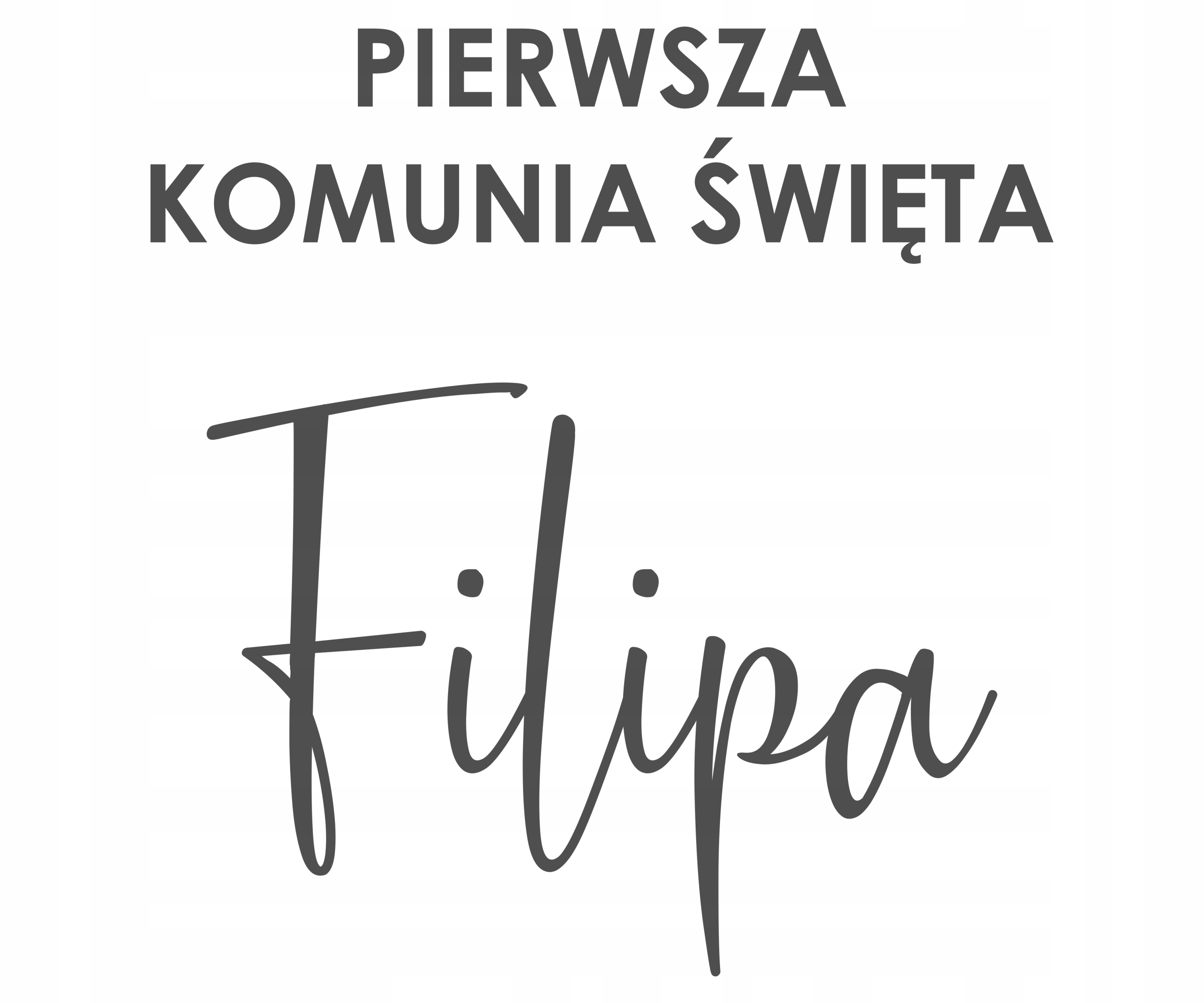 - Rozmiar napisu 'PIERWSZA KOMUNIA ŚWIĘTA' w układzie dwuwersowym: 45,0 x 12,0 cm (szerokość x wysokość)